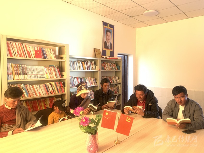 “平時(shí)只要有空,我們就到這里來聚會(huì),看看書、聊聊天,有時(shí)村里會(huì)組織大家集中收看宣傳黨委政府政策的宣傳片,讓我們能及時(shí)了解國(guó)家方針政策?!?月13日午飯后,色達(dá)縣大則鄉(xiāng)厚門村的文化活動(dòng)室,和往常一樣,又陸陸續(xù)續(xù)迎來三三兩兩的村民們。一樓的圖書室,幾位村民正在安靜地看書,有漢語(yǔ)的,也有藏語(yǔ)的,他們身后兩面的書架上,收藏了上萬本各類書籍,其中藏語(yǔ)書籍占了一半以上,還有一些光碟,都是歷次中央、省、州重大會(huì)議的宣講內(nèi)容。在二樓的會(huì)客室,49歲的村民擁巴和鄉(xiāng)親們正熱烈地聊著今年脫貧攻堅(jiān)的形勢(shì)。