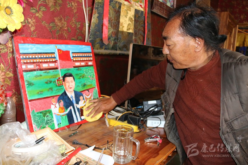 一大早,巴德手拿哈達,仔細地擦拭著自己最滿意的石刻作品?!拔?3歲開始學習石刻技術(shù),這是我家祖?zhèn)飨聛淼奈ㄒ皇炙?。過去由于生活困苦,沒時間也沒精力雕刻,手藝有些生疏。搬來后,環(huán)境好了,日子也越過越好,我就琢磨著想把心中的感恩刻制出來。”拿著習近平總書記的石刻畫像,巴德說,這件是他目前最用心、最為滿意的作品。