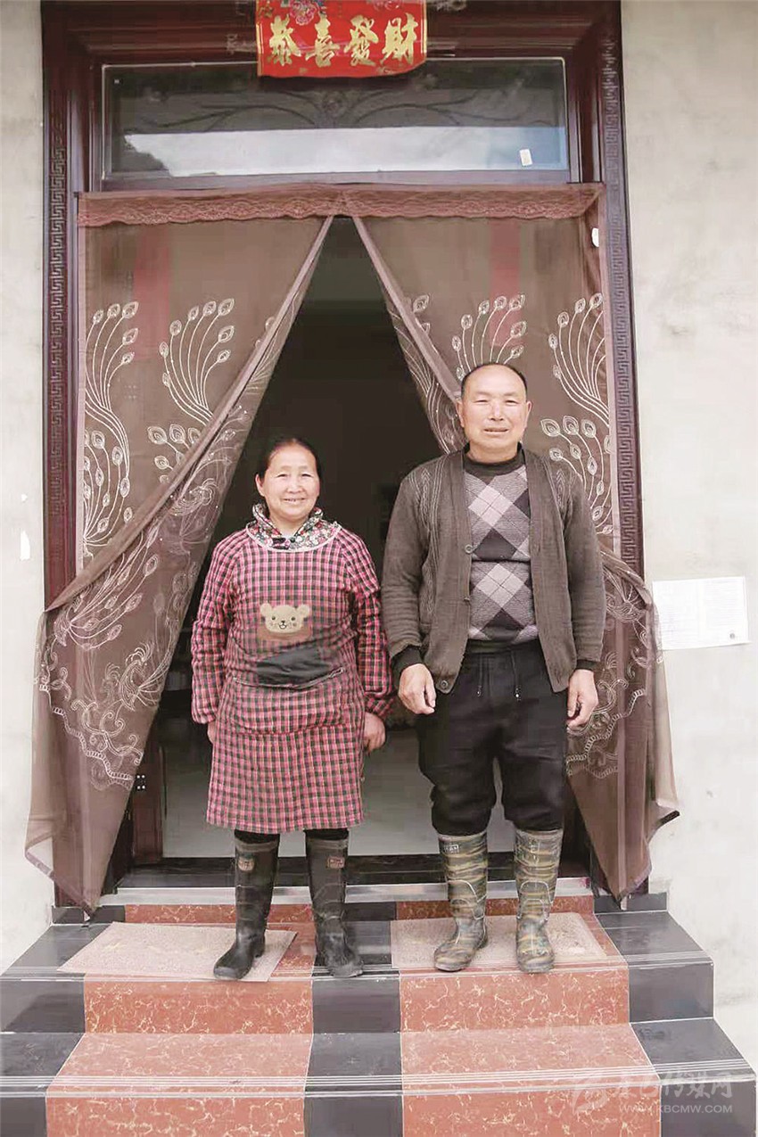 楊水剛夫婦在新建的樓房前合影。