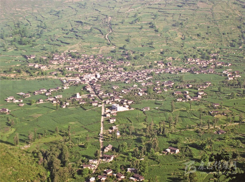 九曲十八彎,車(chē)行近18公里,豁然開(kāi)朗。在平均海拔2280米的“馬鞍形”大山坳里,良田千頃、阡陌縱橫、土地平曠、屋舍樸拙……目之所及處皆如流動(dòng)的音符,串聯(lián)成一曲深春淺夏的“桃花源交響樂(lè)”。