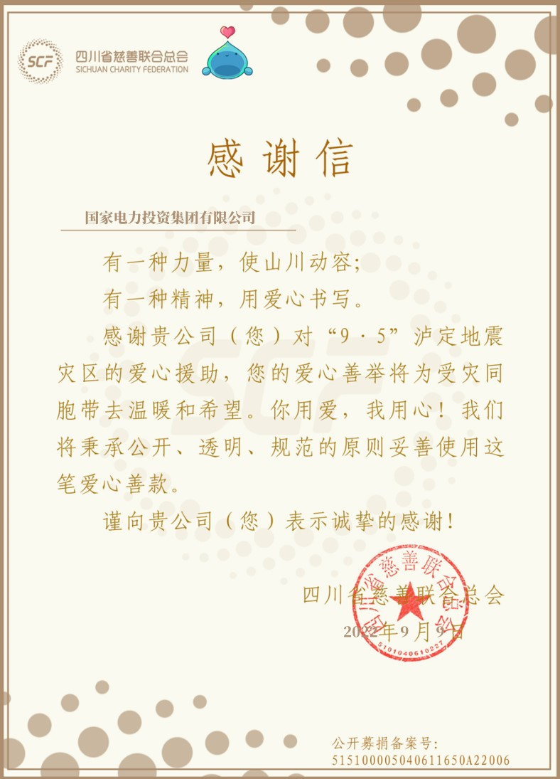 2022年9月5日12時(shí)52分,瀘定6.8級(jí)地震發(fā)生后,國(guó)家電投集團(tuán)立刻向?yàn)?zāi)區(qū)捐款1000萬(wàn)元,全力支援災(zāi)區(qū)救助和災(zāi)后重建,幫助災(zāi)區(qū)人民共渡難關(guān)。面對(duì)災(zāi)情,國(guó)家電投甘孜興川公司迅速啟動(dòng)地震應(yīng)急響應(yīng),做好人員、設(shè)備詳細(xì)排查,防范塌方、泥石流等次生災(zāi)害,保持安全生產(chǎn)穩(wěn)定,千方百計(jì)保安全、保供電,充分發(fā)揮央企能源供應(yīng)“穩(wěn)定器”和“壓艙石”作用,助力災(zāi)區(qū)盡快恢復(fù)生產(chǎn)生活秩序。統(tǒng)籌調(diào)度各方力量,克服疫情和余震影響,緊急采購(gòu)災(zāi)區(qū)急需的發(fā)電機(jī)、電筒等設(shè)備第一時(shí)間送達(dá)災(zāi)區(qū),支援應(yīng)急。在得知瀘定縣得妥鎮(zhèn)電力系統(tǒng)受災(zāi)嚴(yán)重急需救援力量后,公司迅速成立抗震救災(zāi)保供黨員先鋒隊(duì),從正在緊張施工的興川實(shí)證光伏電站抽調(diào)精銳力量26人奔襲700公里,抵達(dá)瀘定縣得妥鎮(zhèn),緊急馳援地方搶險(xiǎn)救災(zāi)工作,拆除100多戶危房電源,恢復(fù)2個(gè)行政村460戶村民安全用電,贏得當(dāng)?shù)卣蜕鐣?huì)各界一致好評(píng)。