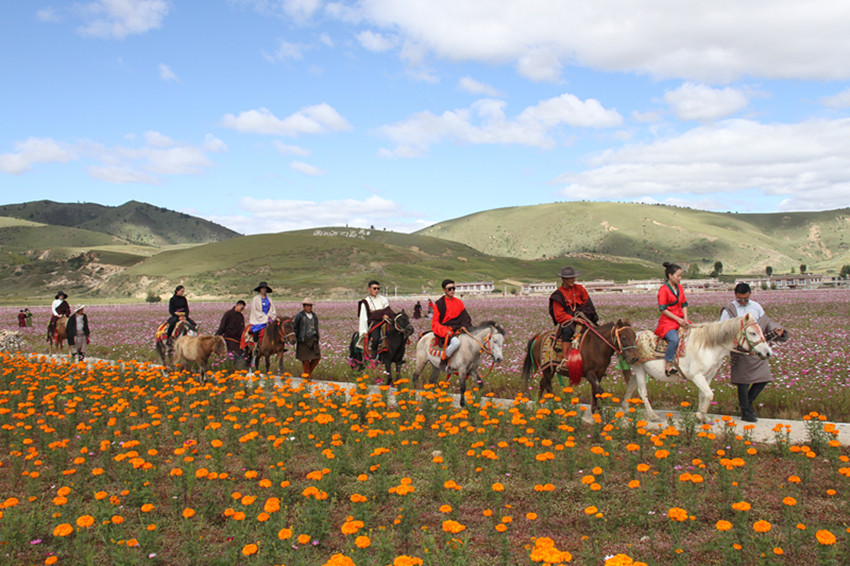 50多歲的村民丁巴尼瑪,在花海從事種植和管理,每個月有2000多元的收入,讓他感到欣慰的是,工作輕松又在家門口。圍繞“農(nóng)居變旅居、家居變客?!蹦繕?biāo),以創(chuàng)業(yè)帶動就業(yè),鼓勵周邊農(nóng)牧民群眾從事旅游服務(wù)。創(chuàng)辦旅游服務(wù)實(shí)體10余個,輻射帶動片區(qū)6個鄉(xiāng)鎮(zhèn)農(nóng)特產(chǎn)品銷售,開展專題旅游服務(wù)培訓(xùn)1000余次,培養(yǎng)本地季節(jié)性解說50人。通過景區(qū)平臺帶動固定就業(yè)100余人,季節(jié)性就業(yè)1.2萬人次。