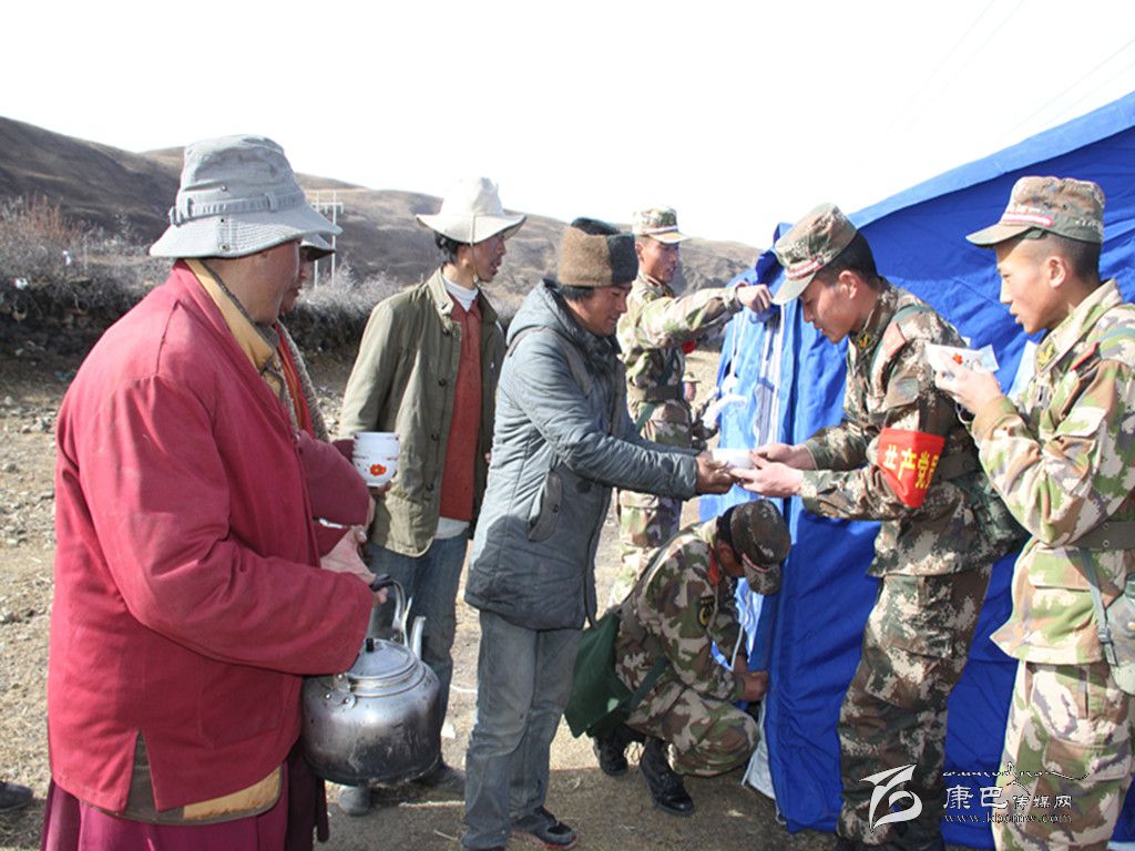 “這些救援隊員們舍去家人來幫助我們,我們沒別的東西,只有燒點熱茶來感謝他們。”尼瑪澤仁打開一袋牛奶,小心翼翼的倒進熱茶里,隨后和村民拿著碗給武警戰(zhàn)士送去。