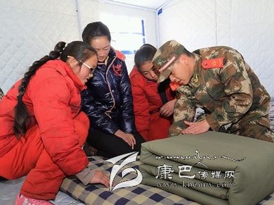 12月7日,康定6.3級地震后的第二個周末,這對甘孜州西康福利學(xué)校的孩子們來說,是一個開心的日子。當(dāng)天上午,武警甘孜州支隊抗震救災(zāi)一線官兵來到學(xué)校,與在這里生活學(xué)習(xí)的孤兒和特困生一起包餃子,度過了一個溫暖的周末。12歲的措姆性格靦腆,她把餃子皮攤在手心,一旁的戰(zhàn)士王兵舀了一勺餡放在餃子皮中央,可措姆怎么也沒法把餃子包得像模像樣。在王兵的輔導(dǎo)下,措姆很快學(xué)會包了一個漂亮的餃子。在學(xué)包餃子過程中,五六十雙手就包出五六十種餃子,看著自己的勞動成果,孩子們特別開心。吃過午飯,武警官兵們還精心安排了疊被子活動,在帳篷內(nèi)教孩子們怎么疊軍被。大家一起動手,你教我疊,熱鬧極了。(宋科霖 /文 郝勇 /攝)