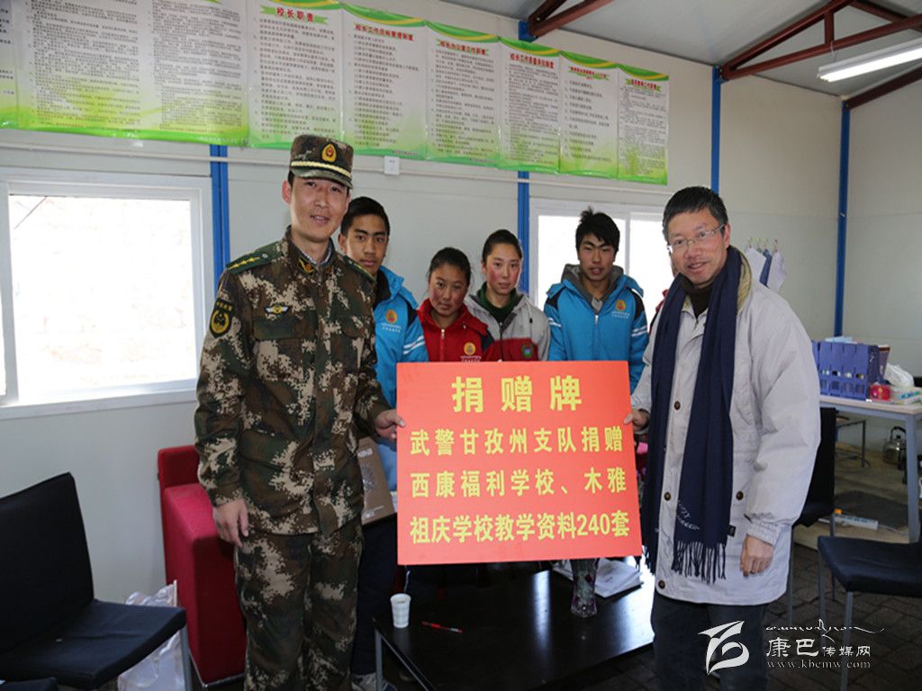 在康定縣西康福利學校、木雅祖慶學校臨時活動板房教學區(qū)校長辦公室內(nèi),該支隊向兩所學校捐贈了240套教學資料,并為5名結(jié)對特困學生贈送了保暖衣。據(jù)該支隊副政委朱平孝介紹,康定“11·22”地震發(fā)生后,他們了解到兩所學校的學生全在活動板房上課后,立即與學校取得聯(lián)系,結(jié)合實際給他們訂購了240套教學資料,用于充實學校教學。并結(jié)合部隊擔負任務(wù)和學校教學實際,將持續(xù)與學校開展愛心幫扶、國防教育、支教助學等共建共育活動。