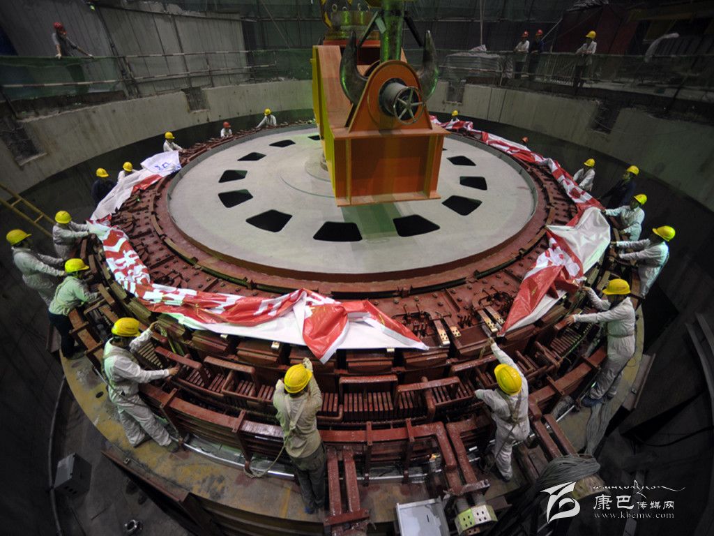 該轉子直徑為12.39米,高2.23米,重577噸,總吊裝重量620噸,是黃金坪水電站機電安裝工程中單件吊裝重量最大的設備。該轉子由東方電機有限公司制造。該轉子的順利就位,為該電站2號機組10月底投產發(fā)電創(chuàng)造了條件。