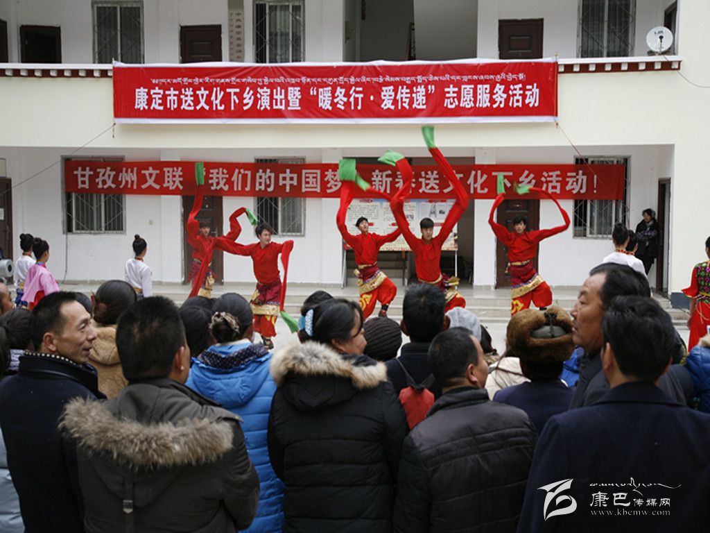 本網(wǎng)訊(本網(wǎng)記者 張兵)1月8日,由州文聯(lián)與康定市聯(lián)合主辦的以“我的中國夢”為主題的2016送文化下鄉(xiāng)文藝演出隊迎著冬陽伴著寒風(fēng)走進大山深處的金湯鎮(zhèn)。整臺演出節(jié)目新穎、形式多樣,獨唱、歌舞、川劇、政策宣講等節(jié)目精彩紛呈,不時博得觀眾們的熱烈掌聲,鎮(zhèn)政府成了歡樂的海洋。同時,州攝影家協(xié)會、州書法家協(xié)會的專家還現(xiàn)場免費拍攝全家福照片、免費書寫春聯(lián)。“送文化下鄉(xiāng)”演出隊帶去了黨和政府對人民群眾的關(guān)懷,同時也營造了文明、健康、歡樂、祥和的節(jié)日氣氛。當天,“送文化下鄉(xiāng)”演出隊不辭辛苦,還在姑咱鎮(zhèn)進行了演出。