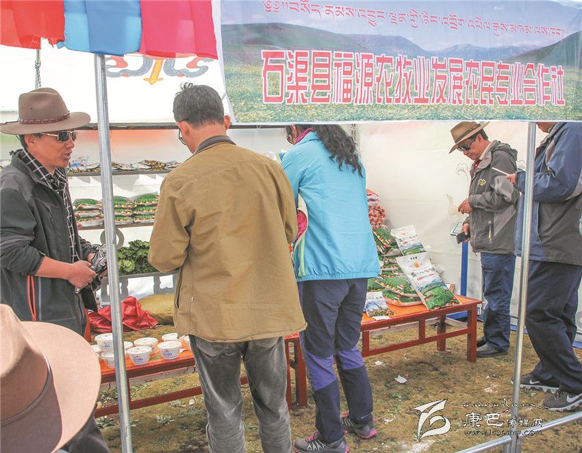 8月3日是石渠縣帳篷節(jié)的最后一天,清晨的陽(yáng)光透過(guò)炊煙傾灑在草原千余頂帳篷上,40多歲的藏族漢子嘎戎從生活區(qū)的帳篷里出來(lái),走向不遠(yuǎn)的太陽(yáng)部落帳篷商貿(mào)城集市。那里安扎著400多頂帳篷,有商戶370家,周邊還有50多個(gè)流動(dòng)的小商販。嘎戎所在的石渠縣福源農(nóng)牧業(yè)發(fā)展農(nóng)民合作社就是其中的一家參展商。從帳篷節(jié)開(kāi)始,嘎戎就和其它5個(gè)人輪流值守這個(gè)他們倍加珍惜的展位,那是他們合作社自今年4月份成立至今第一次在如此重大的場(chǎng)合中露面,經(jīng)過(guò)這次檢驗(yàn),他們對(duì)自己的產(chǎn)品更加有信心。駐真達(dá)村第一書(shū)記祝修濤告訴記者,短短一個(gè)星期,合作社展售的糌粑、人參果、奶渣近2000斤,銷售額達(dá)4萬(wàn)多元。這個(gè)農(nóng)民專業(yè)合作社以扶貧為己任,從建設(shè)種植基地到水磨房加工投入了200多萬(wàn)元,全村50戶村民參與,合作社將原料統(tǒng)一發(fā)給村民加工,再統(tǒng)一收起來(lái),統(tǒng)一包裝銷售。祝修濤說(shuō),社里的產(chǎn)品剛開(kāi)始只是在當(dāng)?shù)爻鍪?,雖然投入大但產(chǎn)量不敢做大,這次有這個(gè)平臺(tái)得到了市場(chǎng)的認(rèn)可,他們對(duì)合作社的發(fā)展充滿了信心。祝修濤,作為該村的第一書(shū)記,他要帶領(lǐng)著這個(gè)合作社好好規(guī)劃、大干一場(chǎng)。
