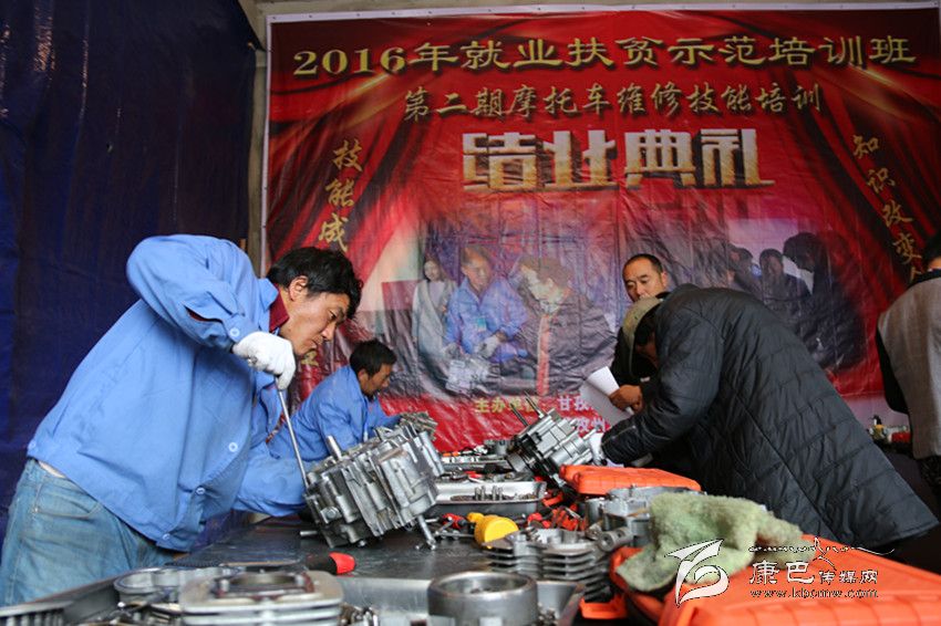 據(jù)了解,為深入貫徹落實州委、州政府精準扶貧工作精神,高標準、高質(zhì)量完成就業(yè)扶貧技能培訓和就業(yè)促進專項計劃,州人力資源和社會保障局抓緊安排部署,開展了系列就業(yè)扶貧技能培訓示范活動。2016年10月10日至29日,第二期就業(yè)扶貧技能培訓示范班——摩托車維修技能培訓在康定開展,來自16個縣的45名建檔立卡貧困戶勞動力參加培訓,為解決學員們的后顧之憂,學員們的往返交通費、住宿費、伙食費、實訓工裝費、資料費全免。今天是考核和技能比賽時間,學員們正在輪流進行發(fā)動機的拆裝,考核合格的學員將獲得初級職業(yè)資格證書。