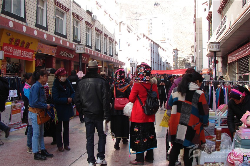 走在街上,一幅熱鬧的場景映入眼簾,熙熙攘攘的人群緩緩蠕動,來往行人大包小包的東西相互碰撞,市場內(nèi)叫賣聲、討價聲與商店歡快的音樂交織在一起,一大早街上就有幾輛工具車裝滿了飲料、糖果等副食品,老板與顧客在討價還價。家家樂超市收銀員一邊忙著收錢找零一邊對筆者說:“這段時間生意真好,老百姓來買的多,且量還不少?!眮淼讲耸袌龈菬狒[非凡,生食店、熟食店、糖果鋪前來購買年貨的顧客擠得滿滿的,大人小孩,僧人牧民各自選著自己想買的年貨,沉甸甸的年貨提在手上喜在眉梢。    (尹東云)