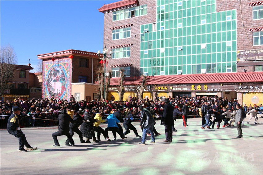 理塘縣干部群眾拔河比賽現(xiàn)場(chǎng)。