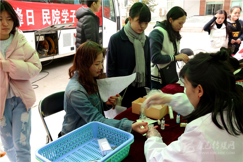 2月中旬,學(xué)院尚未開學(xué),大學(xué)生志愿服務(wù)總隊便開始了本次活動的策劃和籌備,主動與州中心血站進行銜接,在學(xué)院內(nèi)運用網(wǎng)絡(luò)新媒體等方式,向全院師生作無償獻血宣傳動員。3月4日一大早,志愿者們就來到了指定地點做好準(zhǔn)備工作。獻血車到達后,志愿者們有序地為獻血的同學(xué)提供咨詢、指導(dǎo)填表、引導(dǎo)獻血和派發(fā)獻血證和紀(jì)念品等服務(wù)。本該是陽春三月,但春天卻遲遲不肯到來,凍雨仍然淅淅瀝瀝下個不停,前來獻血的同學(xué)不顧寒風(fēng)凜冽,在征詢處和獻血車外排起了長長的隊伍。許多同學(xué)距離上一次獻血還沒滿半年時間,也加入了獻血者的隊伍,血站工作人員只能委婉拒絕。面對這些熱心的獻血者,在大學(xué)生志愿者服務(wù)總隊記者的采訪中,一位同學(xué)笑著回答:“獻血既可以幫助他人,對自己健康也有好處,何樂而不為呢?”她揮著小拳頭:“再說了,今天是雷鋒日,我也要爭當(dāng)民院小雷鋒!”
