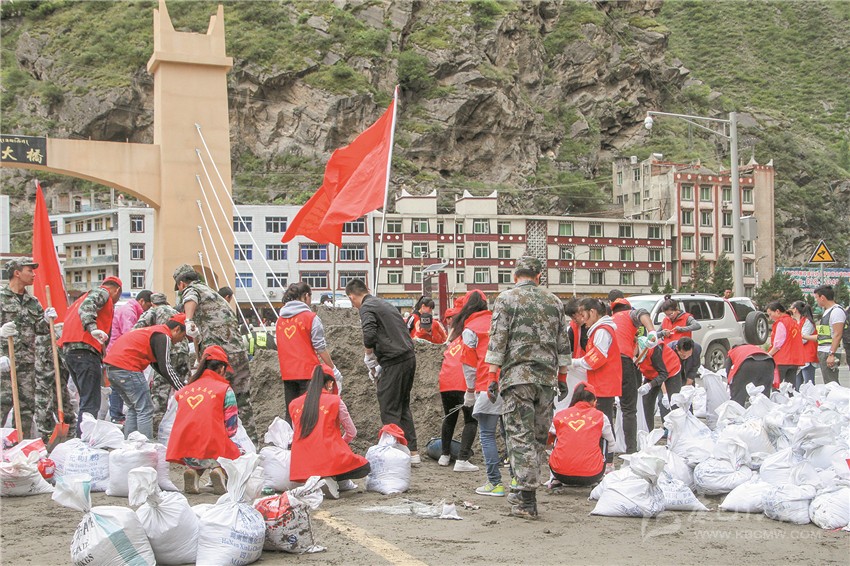黨員志愿者活躍在抗洪搶險(xiǎn)第一線。