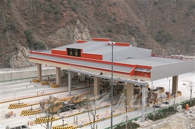 齊整的標(biāo)志線、指示路標(biāo),安全的隔離柵、防護(hù)網(wǎng),醒目的信號(hào)燈、提示牌……道路附屬設(shè)施井然齊備,體驗(yàn)車隊(duì)從ETC車道剛駛出,高懸著“雅康高速歡迎您”電子指示牌的瀘定收費(fèi)站出現(xiàn)在眼前,二郎山隧道近在咫尺。