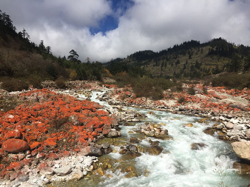曾經(jīng)有科學(xué)家將海螺溝的紅石帶出去研究,結(jié)果剛下飛機(jī),發(fā)現(xiàn)石頭上的紅色褪了,因?yàn)榭諝赓|(zhì)量不好,導(dǎo)致石頭上的喬利橘色藻無(wú)法生存。