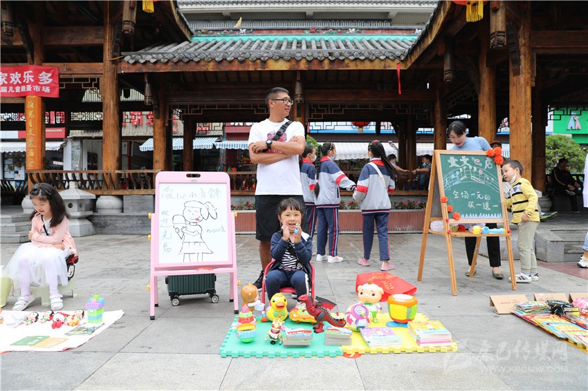 “這個玩具1元錢賣不賣?”“已經(jīng)很便宜啦!最低3元錢?!?月31日,瀘定橋廣場人流涌動、熱鬧非凡,叫賣聲不絕于耳,不少“小顧客”在各個攤位之間,認真地挑選自己心儀的商品,有模有樣地討價還價,廣場變成了熱鬧的自由貿(mào)易市場。