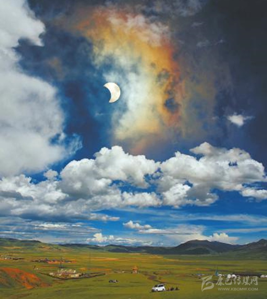 6月21日,甘孜州理塘縣毛埡草原上空的日食景象。 葉強平 攝