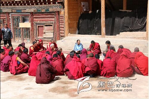 據了解,自從開展“同心同向”活動以來,甘孜日報社對聯系寺廟可謂是傾心、傾情、傾力,在實施惠寺惠僧工程中更是盡力而為、盡其所能。先后投入資金對寺廟院壩進行硬化,加固了寺廟后的堡坎。如今,在寬敞干凈的院壩內,僧人們圍坐在一起認真聆聽宣講,信教群眾在寺院悠閑地搖著轉經筒,處處彰顯著和諧的氛圍。