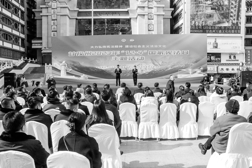 本網(wǎng)訊 在第十個(gè)國家憲法日之際,12月1日下午,由州委宣傳部、州委政法委主辦,州司法局承辦的“甘孜州2023 年‘12·4’國家憲法日宣傳活動(dòng)”在康定市情歌廣場(chǎng)舉行。