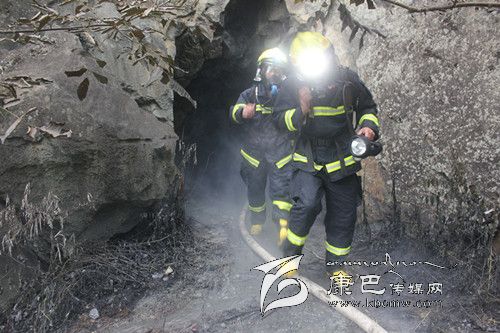 消防官兵在使用有毒氣體探測儀對(duì)現(xiàn)場氣體進(jìn)行檢測后發(fā)現(xiàn),雖然煙氣刺鼻,但未檢測出有毒氣體。在使用排煙機(jī)對(duì)山洞進(jìn)行持續(xù)排煙后,中隊(duì)派出兩名消防官兵佩戴空氣呼吸器和強(qiáng)光燈在水槍的掩護(hù)下進(jìn)入山洞偵查煙氣源。因山洞內(nèi)煙霧大,溫度高,能見度低,第一批消防官兵未能找到煙氣源。在短暫準(zhǔn)備后,第二批消防官兵攜帶相關(guān)器材進(jìn)入山洞繼續(xù)尋找。在距離山洞口十幾米的地方,消防官兵發(fā)現(xiàn)了大量正在燃燒的電纜線,經(jīng)初步確定,大量白煙就是電纜線燃燒后產(chǎn)生的。因山洞長時(shí)間受高溫烘烤隨時(shí)可能倒塌,消防官兵在與當(dāng)?shù)卣?fù)責(zé)人協(xié)商后對(duì)山洞洞口實(shí)施了封閉滅火。