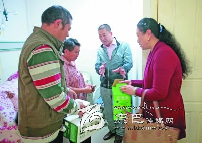 雖然大家都在獻(xiàn)愛心,但這點(diǎn)錢也顯得杯水車薪。結(jié)對(duì)認(rèn)親小分隊(duì)回到報(bào)社后,立即向報(bào)社黨委作了匯報(bào),第二天中午,報(bào)社派出人員代表黨委、編委會(huì)、結(jié)對(duì)支部和全體職工,到州人民醫(yī)院探望蘇國(guó)全,這才出現(xiàn)了本文開頭的一幕。在病房照顧蘇國(guó)全的妻子和女兒看見“親戚”單位來了人,眼里閃動(dòng)著激動(dòng)的淚光。“這幾天借來的錢都要用光了,如果停藥就會(huì)有危險(xiǎn)。”蘇國(guó)全的妻子饒大姐說。報(bào)社領(lǐng)導(dǎo)安慰她說,“不要急,我們大家一起想辦法。”并將全社職工捐贈(zèng)的10000元現(xiàn)金交到她的手中。當(dāng)她從報(bào)社領(lǐng)導(dǎo)手中接過愛心款時(shí),母女倆的淚水奪眶而出,連聲感謝。