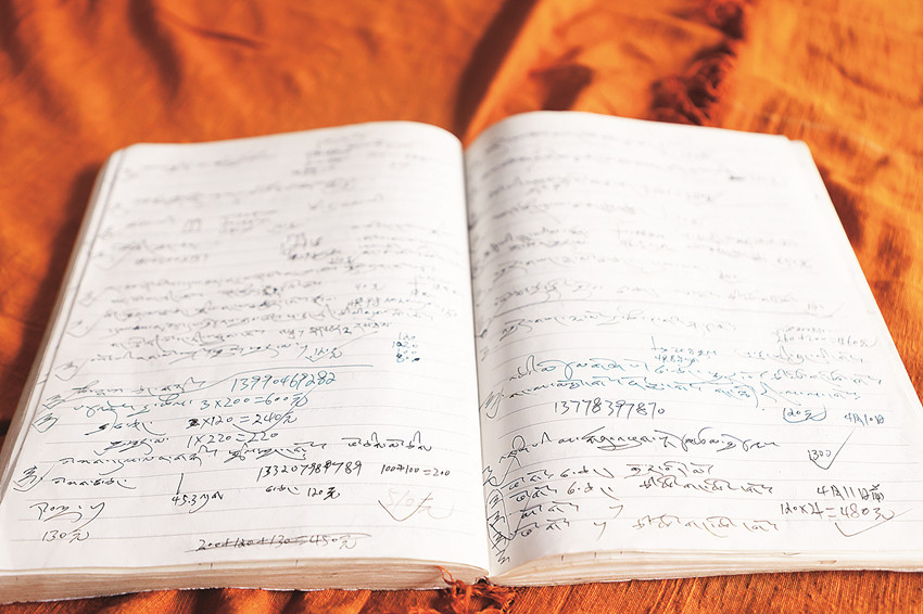 扎西澤仁的筆記本記滿顧客要求、價格等信息。