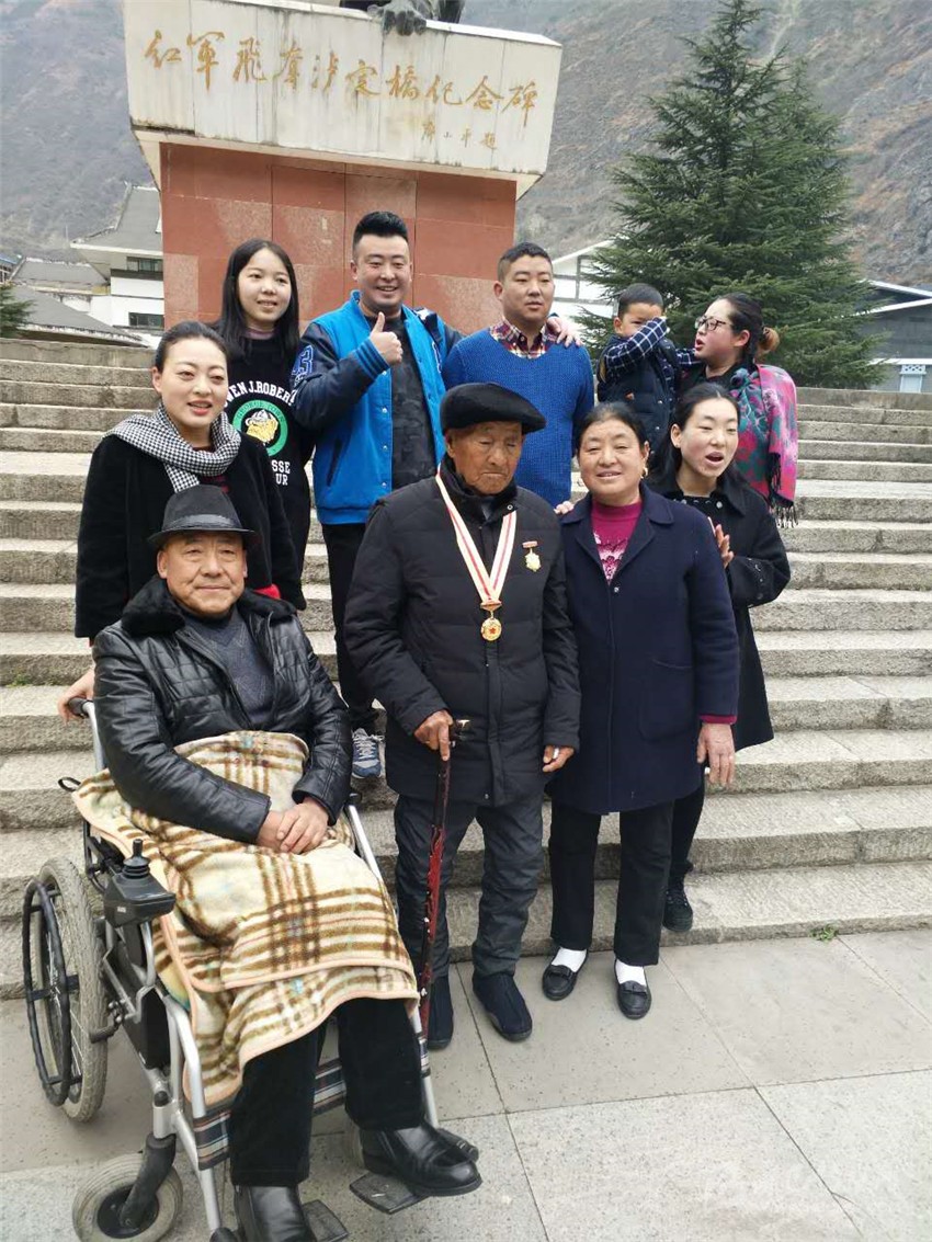 王瑞生專門帶領28名兒孫們前往瀘定橋紀念碑前合影,向他們講述紅軍長征這段歷史。他說得最多的一句話就是,“只有共產(chǎn)黨才能給我們帶來幸福生活,要不忘黨恩,回報社會?!崩先颂厥獾募t軍情結感染著兒孫們,老人傳承著紅軍精神,不忘初心,永遠向前?!袄先松砩象w現(xiàn)的不向困難低頭,堅強不屈的精神,正是當前開展精準扶貧工作所需要倡導的精神,只要我們發(fā)揚紅軍精神,就一定能夠過上好日子。”老人的孫子告訴記者,在老人的激勵下,現(xiàn)在家人昂揚向上,幸福美滿。