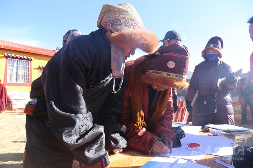農牧民簽字領取新家具。