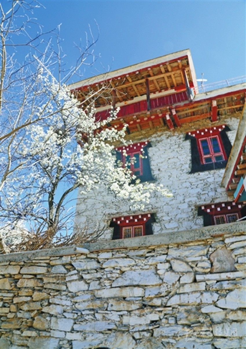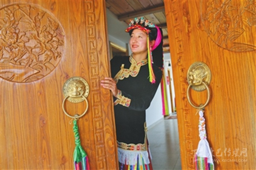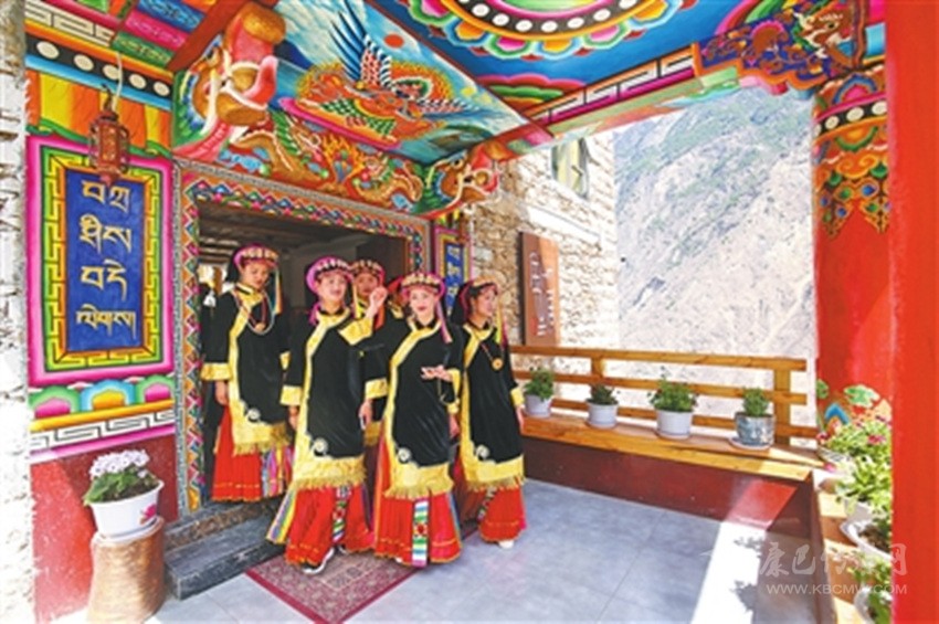 步入藏寨,藏式花紋的窗欞外懸掛著火紅的辣椒和金黃的玉米。朱紅色的大門上刻著藏式圖騰,客廳里色彩鮮艷、雕龍畫鳳的藏式餐桌上則擺滿了當(dāng)?shù)厥a(chǎn)的時(shí)令瓜果。室內(nèi)房間干凈整潔,有寬大的床鋪、客廳和洗手間,手捧香甜的酥油茶,倚窗而立,樹葉隨風(fēng)擺動(dòng),似乎在訴說著少女心中對外面世界的向往。