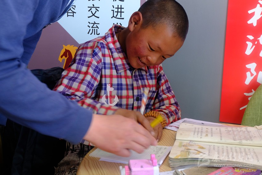 兩年前,小波家享受異地扶貧搬遷政策,隨父母從塔子鄉(xiāng)搬進(jìn)了安康社區(qū)的新家,小波就近在色達(dá)二完小讀書,現(xiàn)在已經(jīng)是二年級的學(xué)生了。由于學(xué)習(xí)基礎(chǔ)薄弱,他每個周末都會到社區(qū)里的“小課堂”補習(xí)。