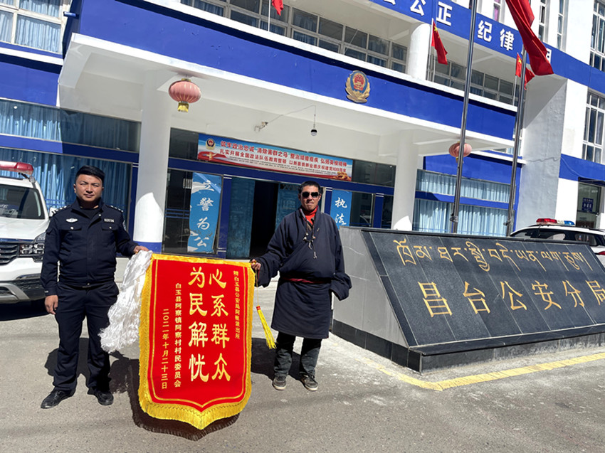 白玉縣阿察鎮(zhèn)因海拔較高,即便現(xiàn)在已是三月末了,也遲遲感受不到一絲春的暖意。但在昌臺公安分局內,一面面鮮艷的錦旗卻讓整個空間有了溫度,一面印有“心系群眾 為民解憂”的錦旗吸引了我們的注意。根呷扎西介紹,為了感謝民警們解決了阿察村3名群眾身份證沒能辦理的“老大難”問題,阿察鎮(zhèn)阿察村黨支部書記章巴和村民們一起送來了這面錦旗。