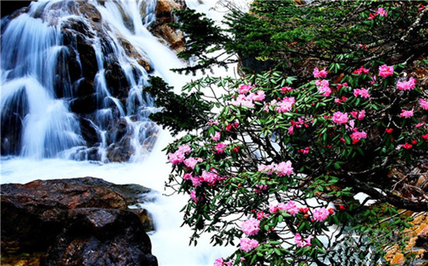 杜鵑峽東連七色海,西接野人海,峽谷長(zhǎng)6公里。峽谷中,溪澗時(shí)而奔流,時(shí)而舒緩,飛珠濺玉,溪岸兩邊林木蔥郁,尤以原始杜鵑林引人注目。這里的杜鵑花千姿百態(tài),艷麗多彩。有的花樹(shù)高達(dá)數(shù)丈,猶如臨空欲飛的散花仙女;有的矮不盈尺,恰如鋪展的裙裾;有的高居山崖,迎風(fēng)搖曳,頻頻向來(lái)賓致意;有的豎立溝谷,亭亭玉立,向游客含羞行禮;有的花大如海碗,有的花小似紐扣;紅、黃、藍(lán)、白、紫、似珊瑚,賽珍珠,一團(tuán)團(tuán),一簇簇,滿山是花的世界,滿峽是花的海洋,她匯聚了杜鵑花族中68個(gè)品種,從4月中旬先后開(kāi)放至7月,花期長(zhǎng)達(dá)4個(gè)月。